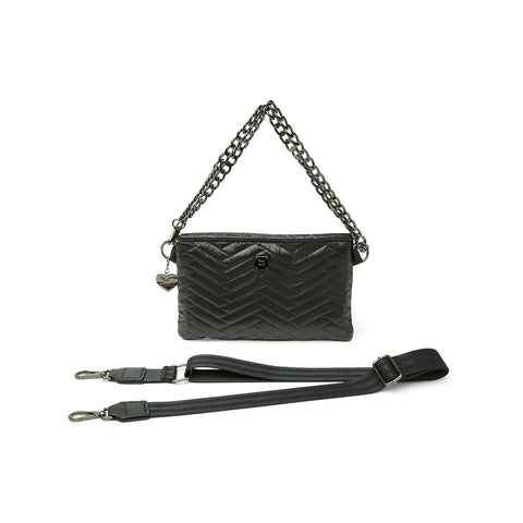• Crossbody or shoulder bag using the detachable chain strap for a longer look
